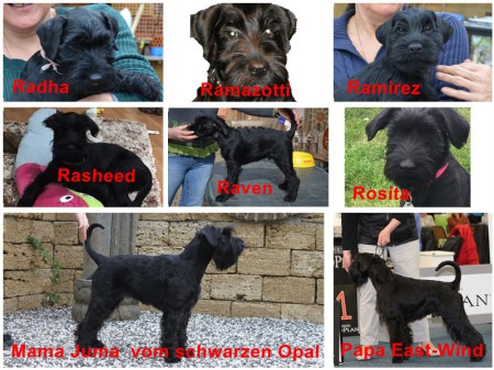 Herzlichen Glückwunsch zum 9. Geburtstag unserem R-Wurf, Radha, Raven, Rosita, Rasheed, Ramazotti und Ramirez, senden Mama Juma und Papa East-Wind, Gabriele, Wolfgang und alle Schnauzer vom schwarzen Opal