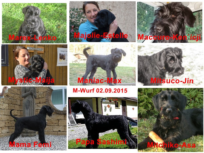 Bahiya-Naomi +, Bazooka-Joy, Bismark-Kalote +, Black Star Celeste, B-Lady-Amia +, Bombadill-Beppo, Botticelli-Nachero + und Buster-Keaton wünschen Mama Abracadabra Lady del Guidante +, Gaby, Wolfgang und die Schnauzer vom schwarzen Opal.